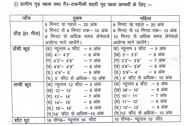 शारीरिक मापदंड (ग्रामीण और शहरी गृह रक्षक – दोनों के लिए समान)